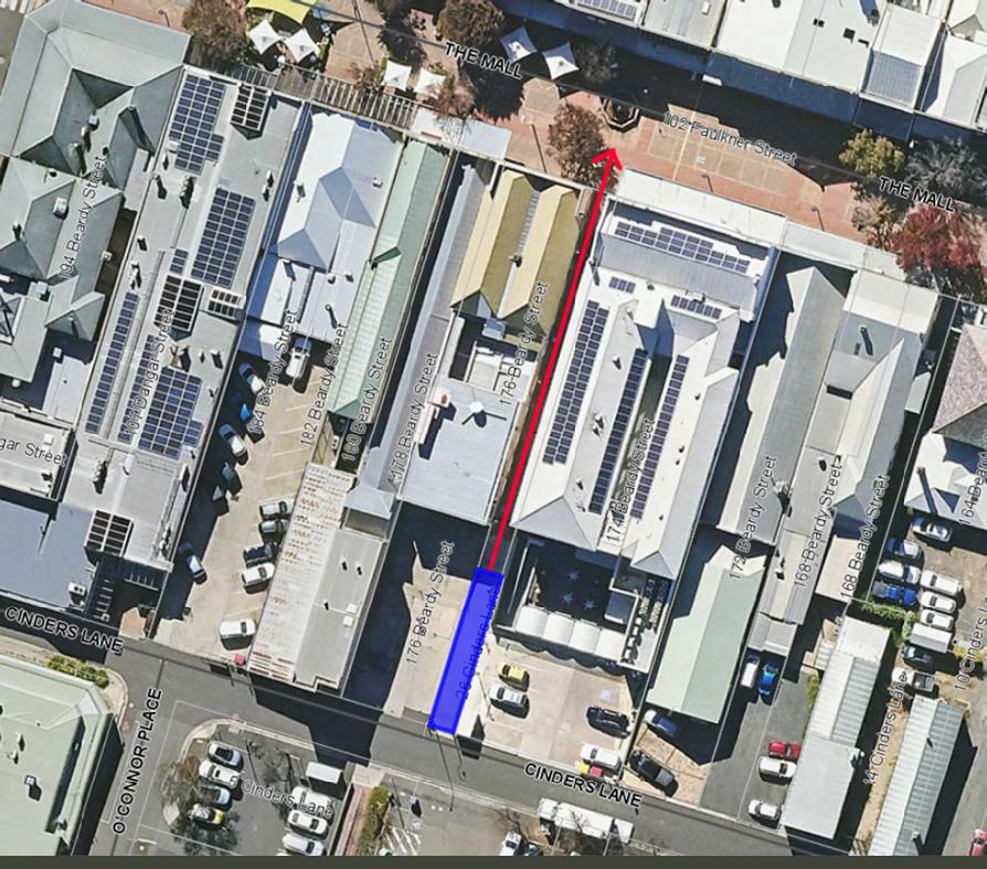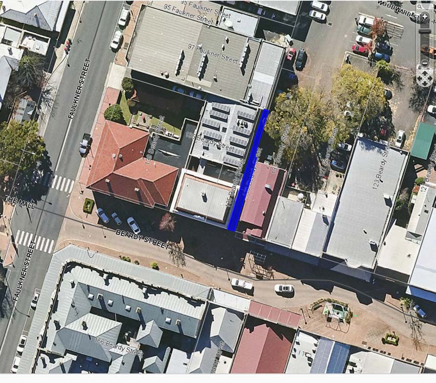 This unnamed laneway provides informal vehicle and pedestrian access behind several commercial buildings in the Armidale CBD. It is owned and managed by Council.